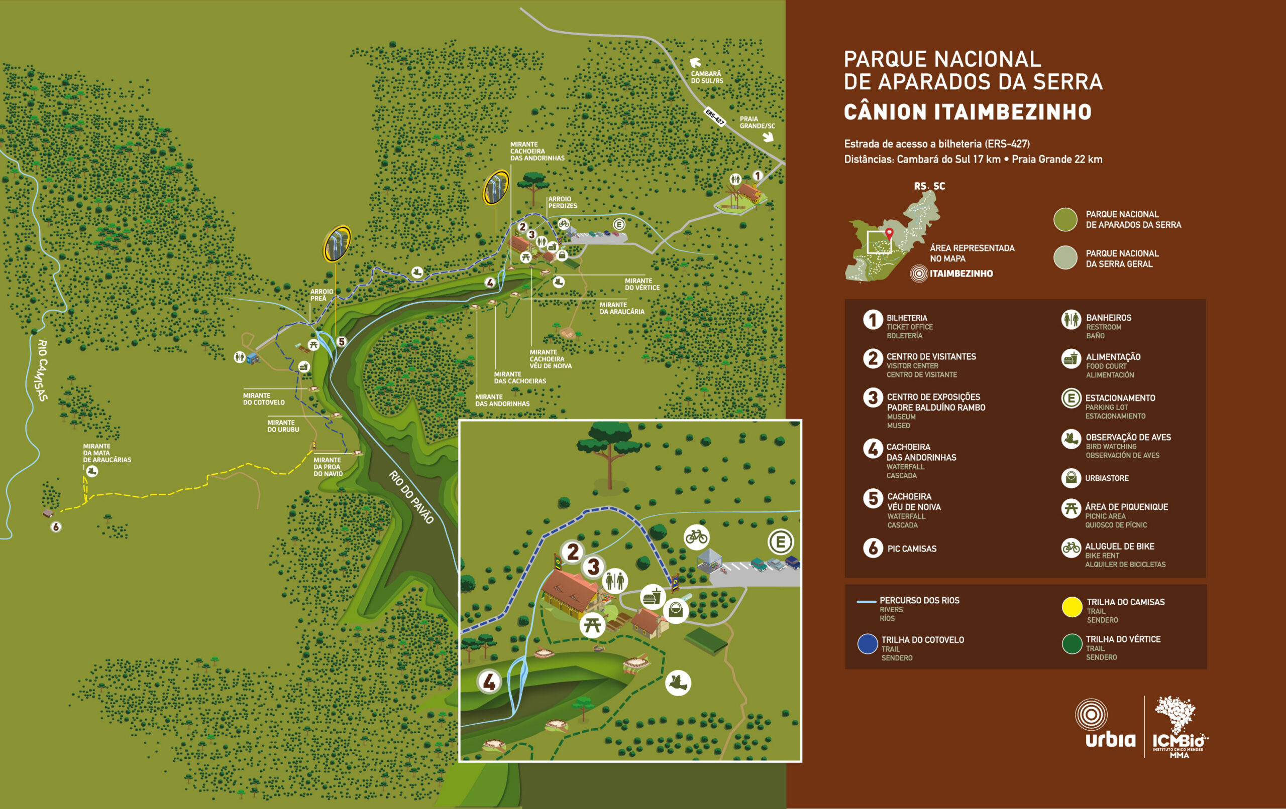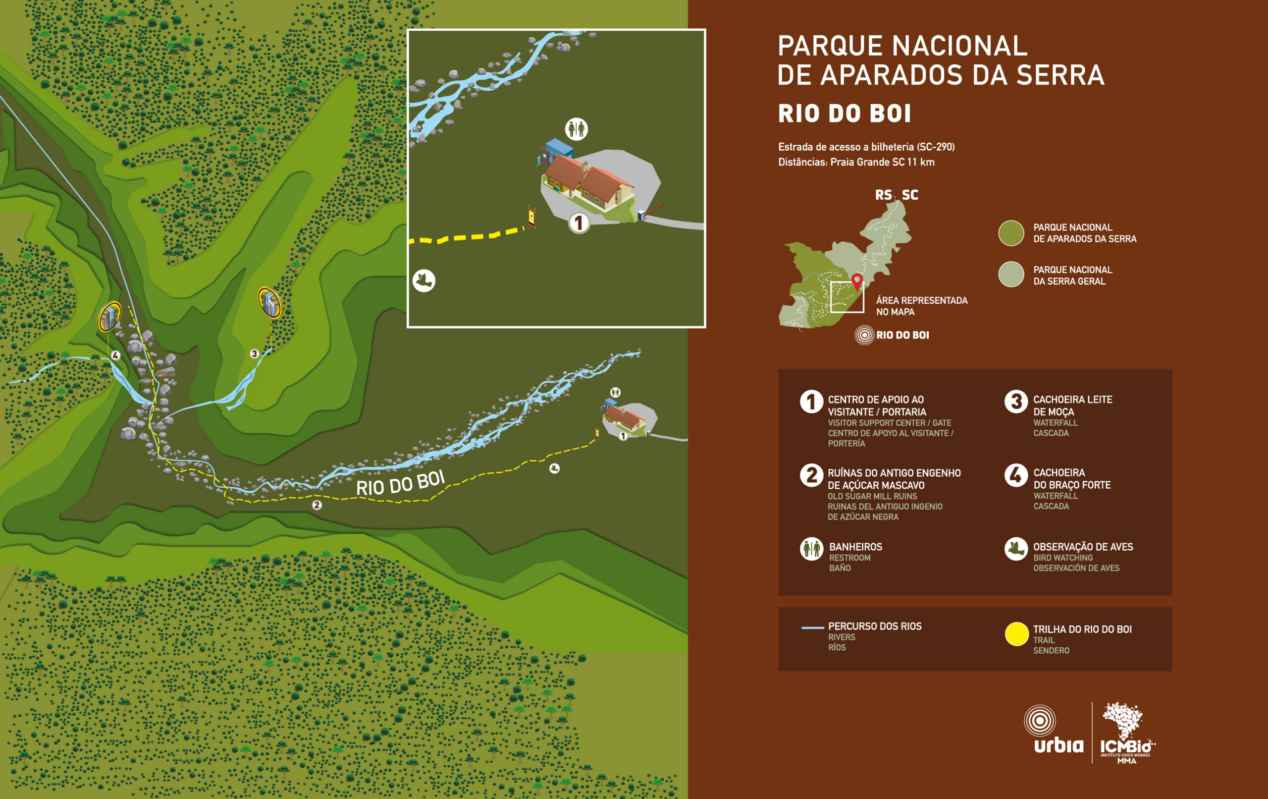Prepare-se para uma experiência única em meio à grandiosidade dos cânions. Com aproximadamente 14 km de percurso entre ida e volta, a Trilha do Rio do Boi serpenteia pelas margens do rio que lhe dá nome, levando você a paisagens que impressionam a cada passo. Cercado por formações rochosas monumentais e uma flora exuberante, este caminho no coração do Parque Nacional de Cambará do Sul é uma verdadeira imersão na natureza.